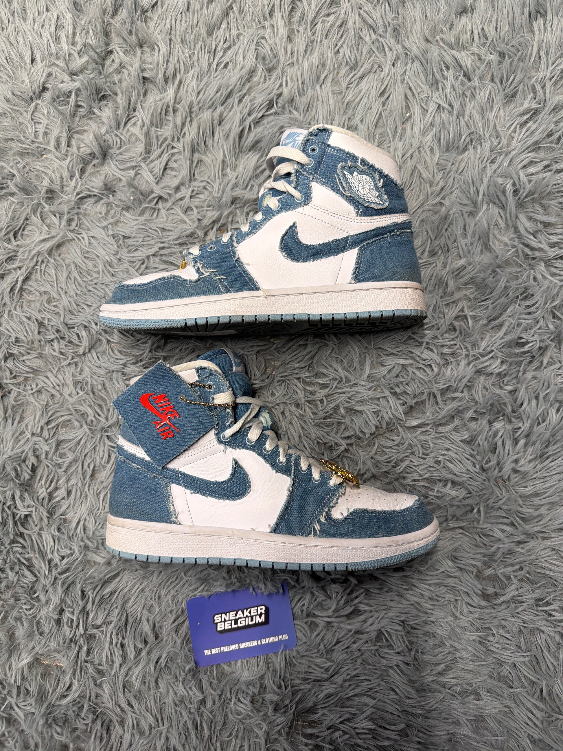 Denim upper still looks clean with normal signs of wear. A unique Jordan 1 colorway that stands out and is getting harder to find.